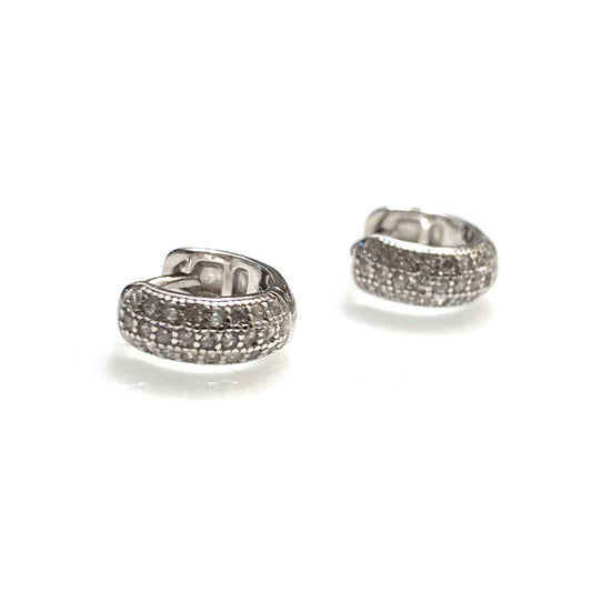 Tiny Sterling Silver Huggie Hoops with CZ | 10mm Minimalist Earrings