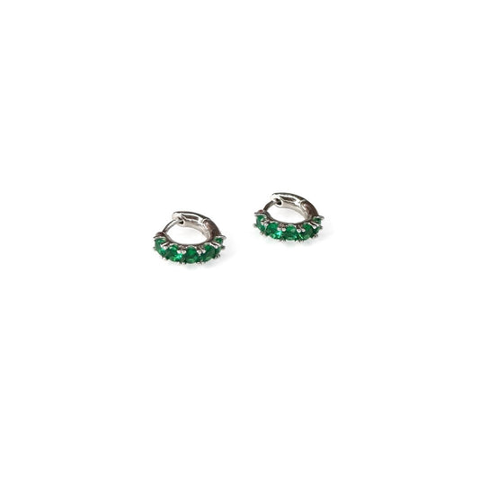 Emerald Green CZ Huggie Earrings - Sterling Silver | Shower Safe