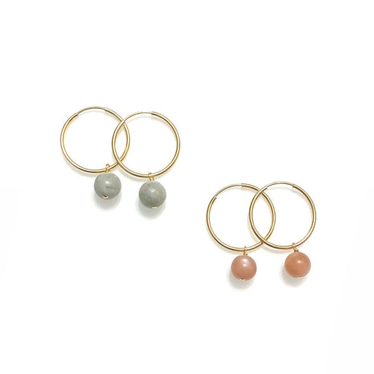 Gemstone Charm Hoop Earrings - Jade & Moonstone | 14K Gold-Filled