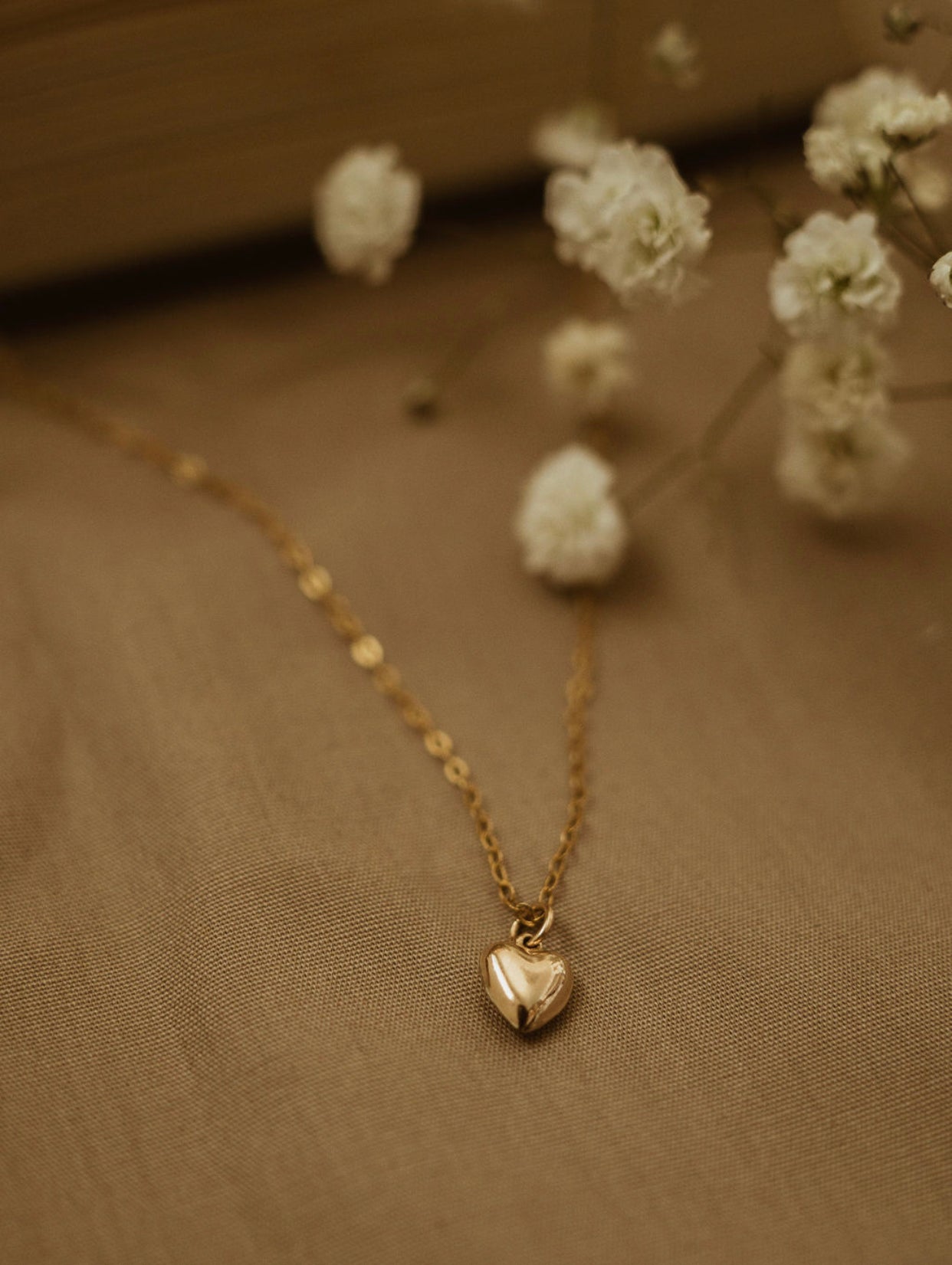 Petite puffy heart necklace (14K gold-filled, shower safe)